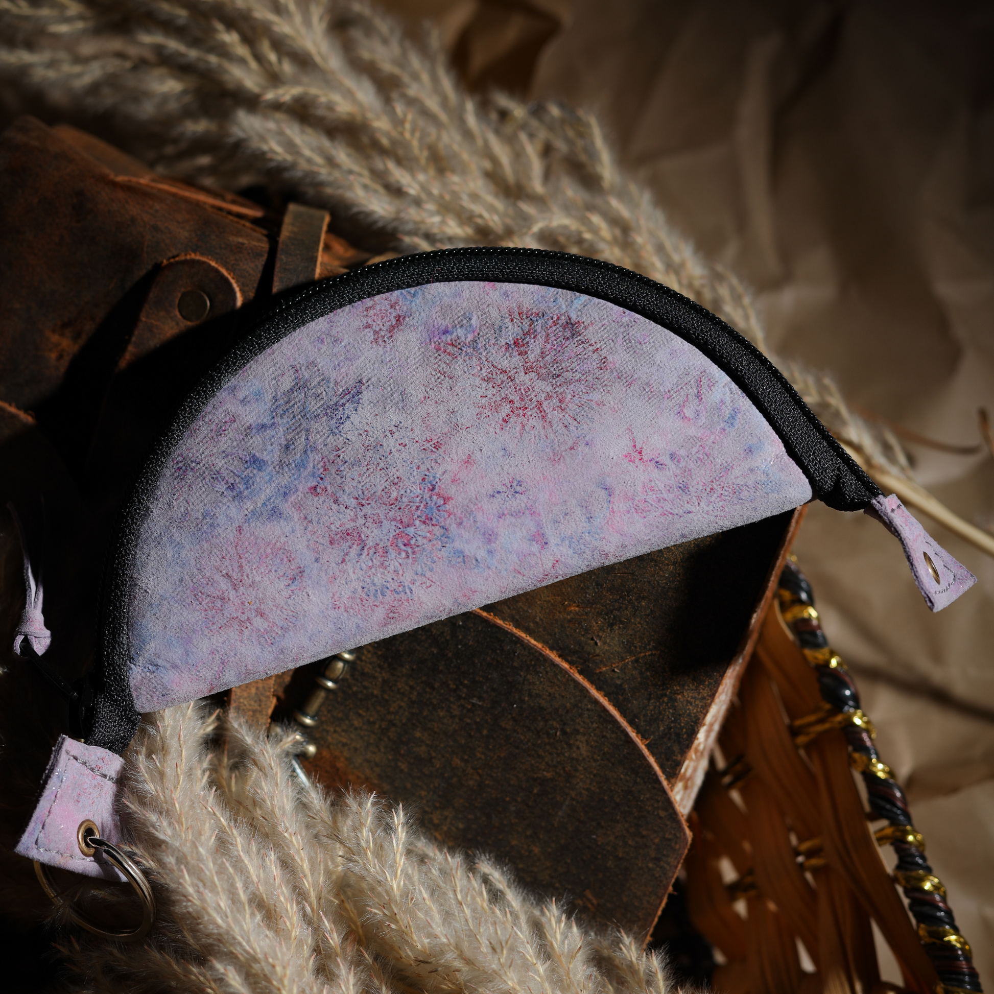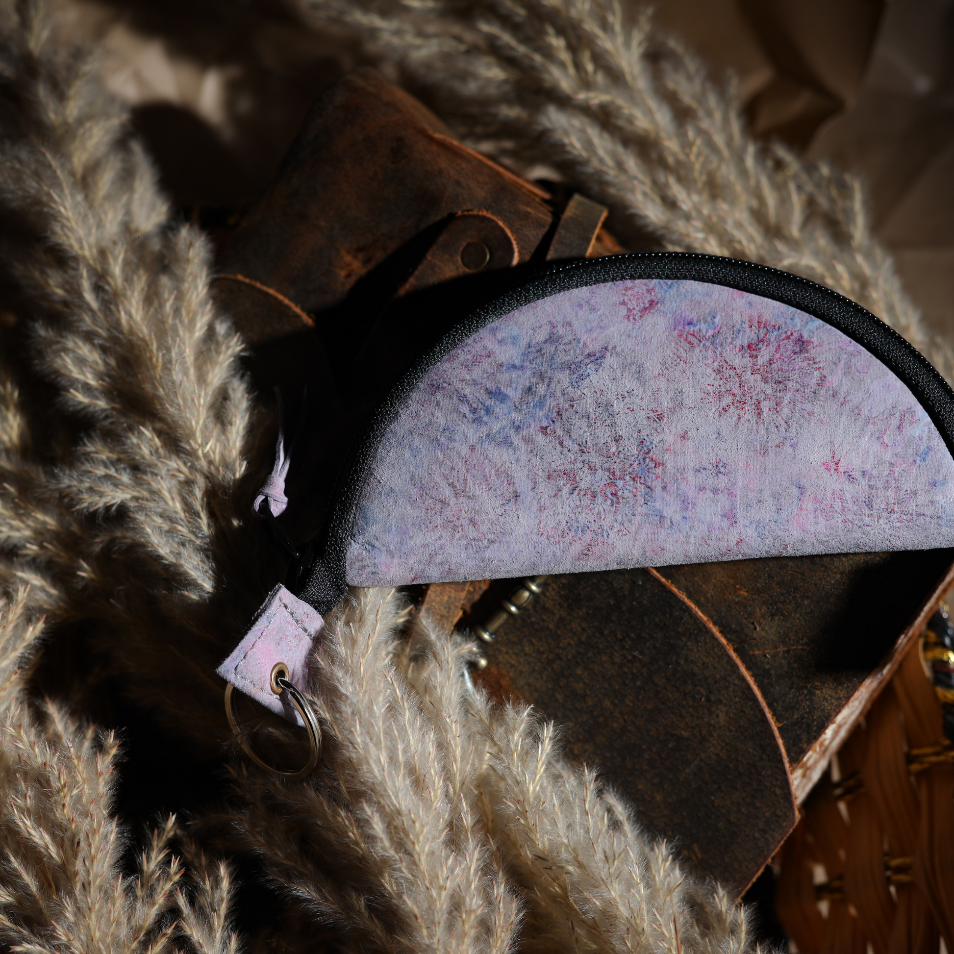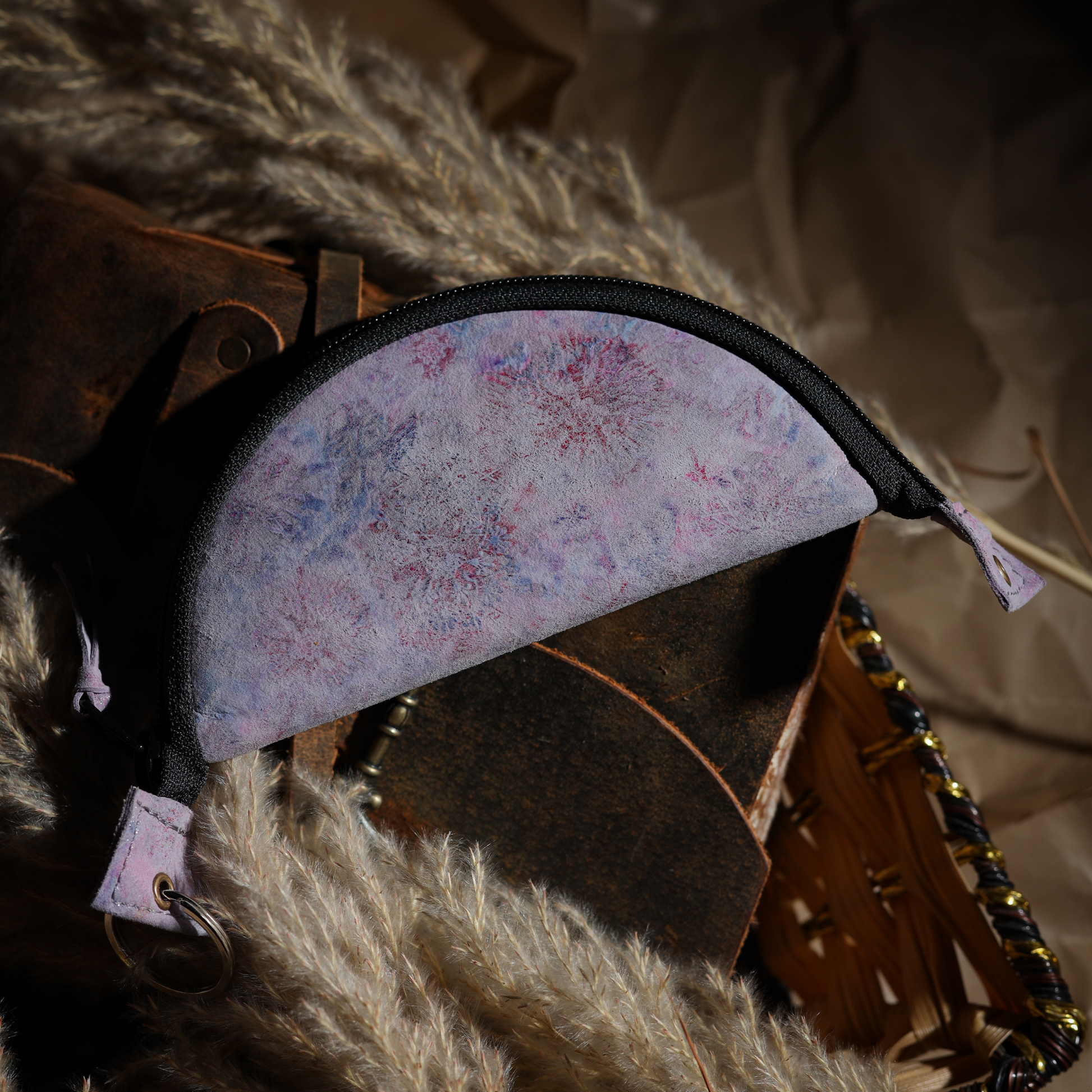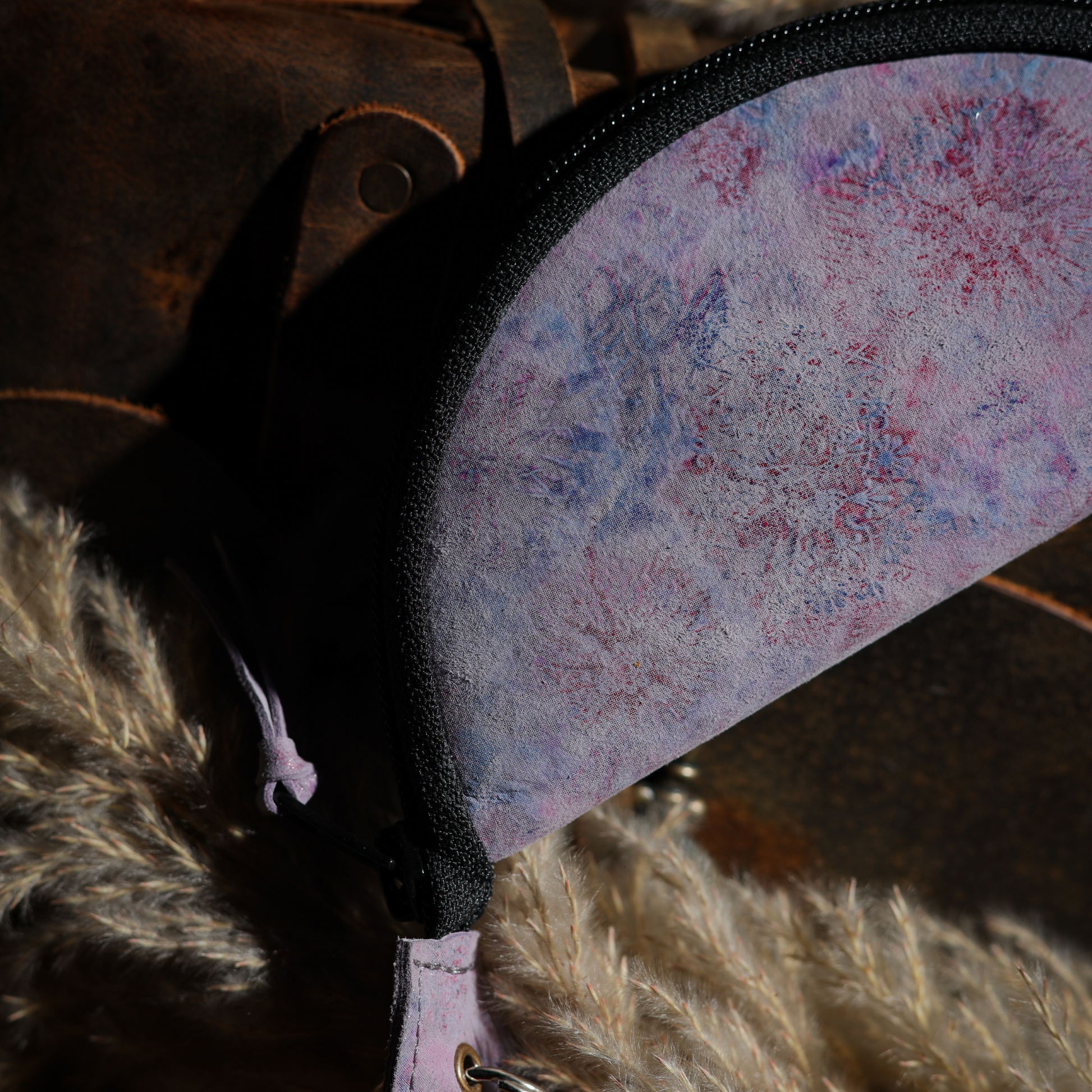 The outer surface is washed in soft hues of violet and blush, echoing drifting haze and dreamlike abstraction.