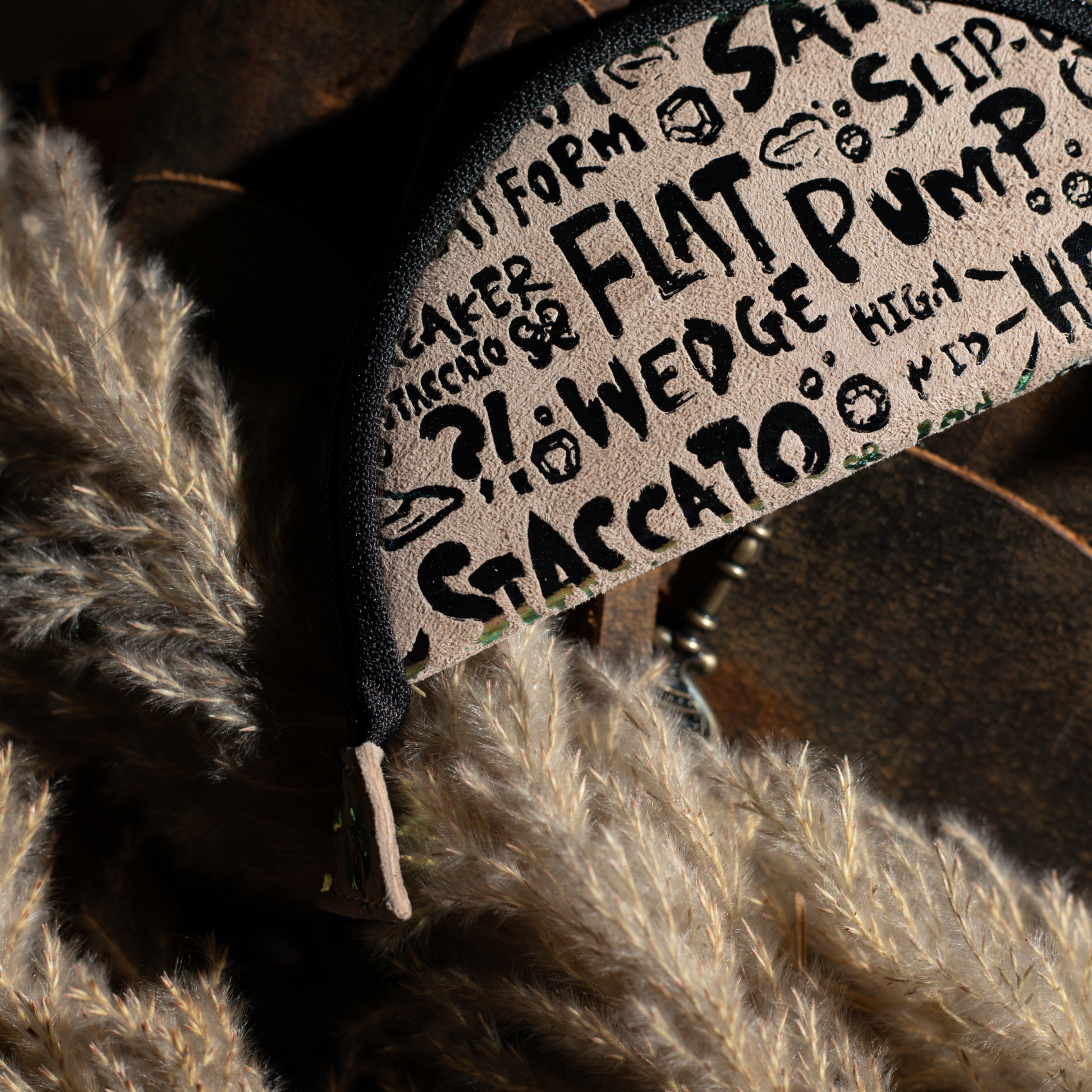 Material: Inner – Calf DD leather (1.3mm, lab-tested); Outer – Goat suede with stencil typography foil overlay