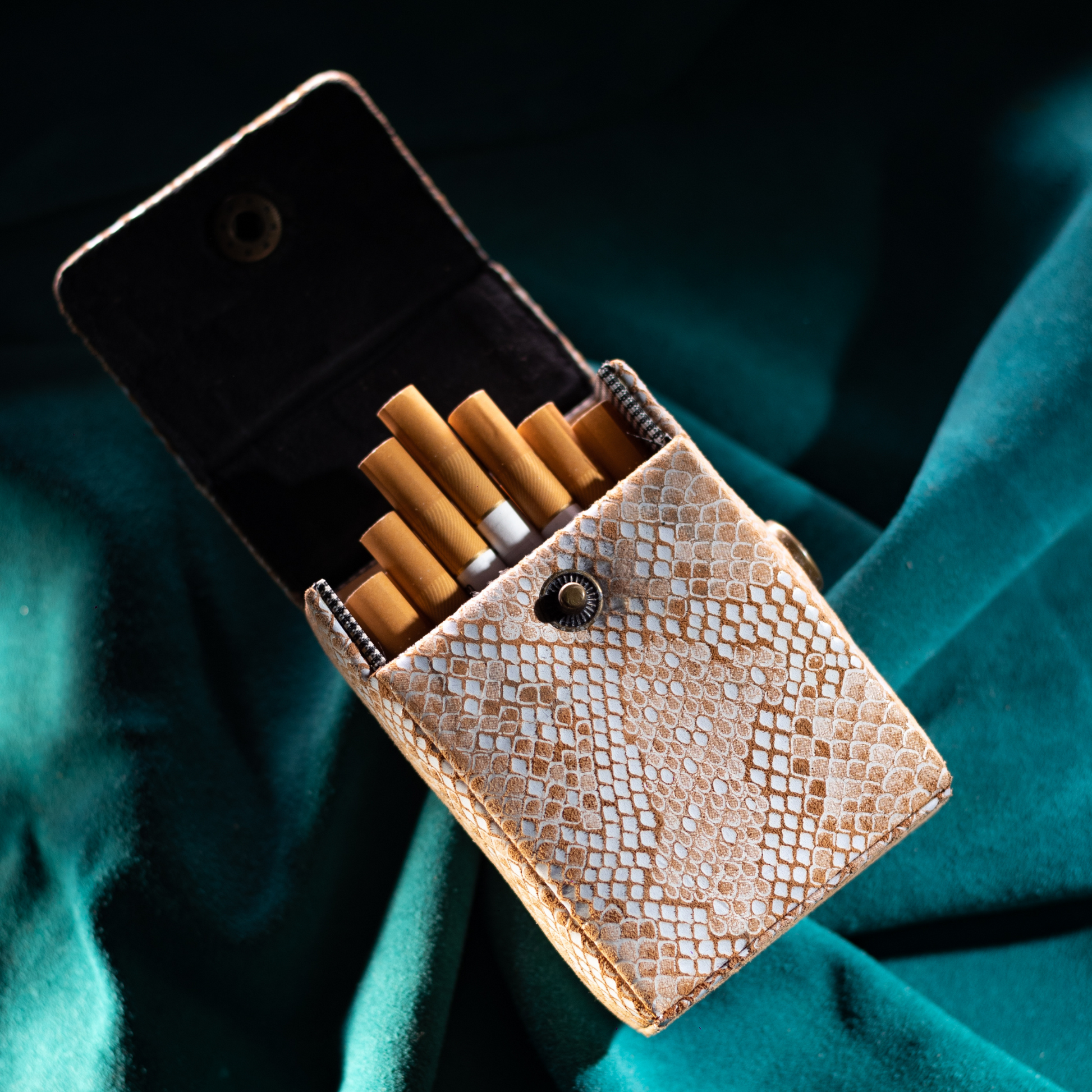 The SMOK-PACK / ALBINO SERPENT channels the spirit of the ancient Nagas into a handcrafted leather cigarette case.