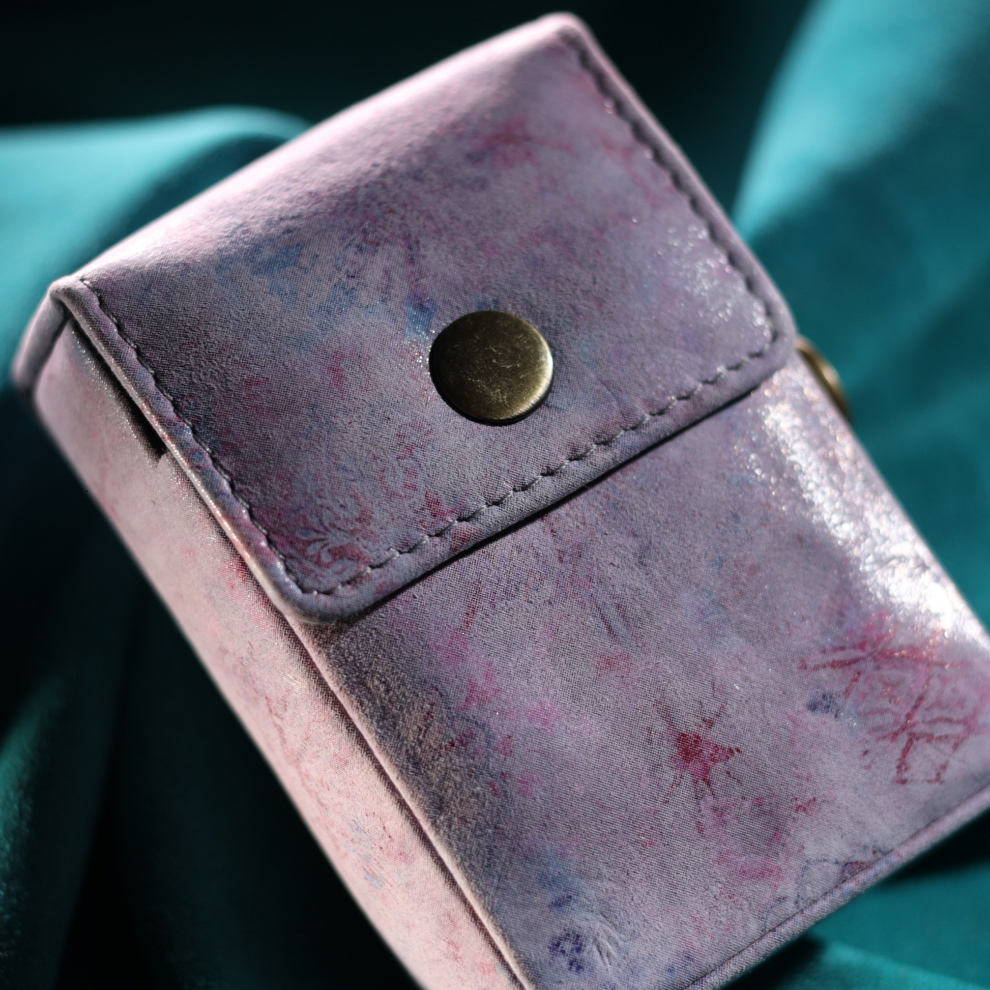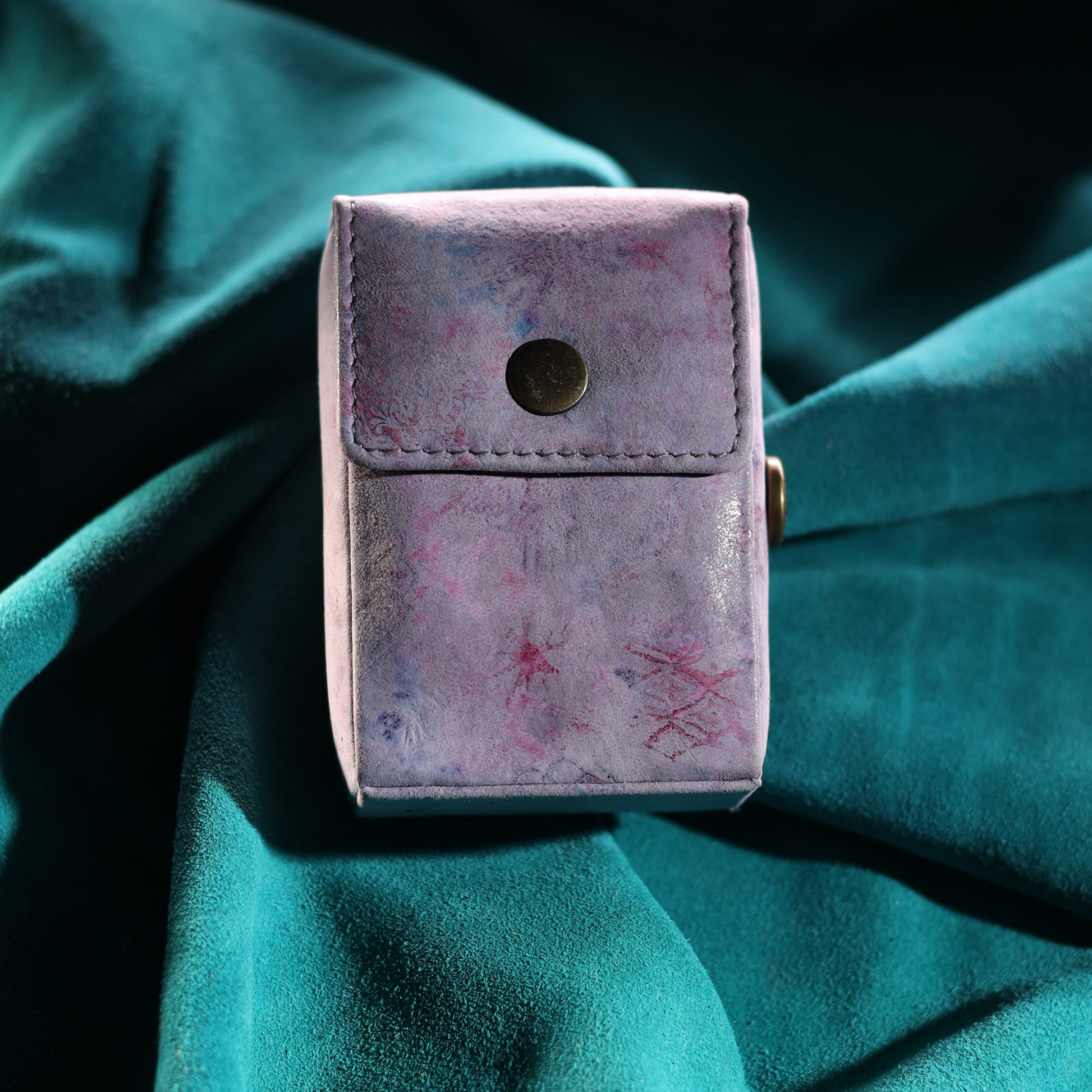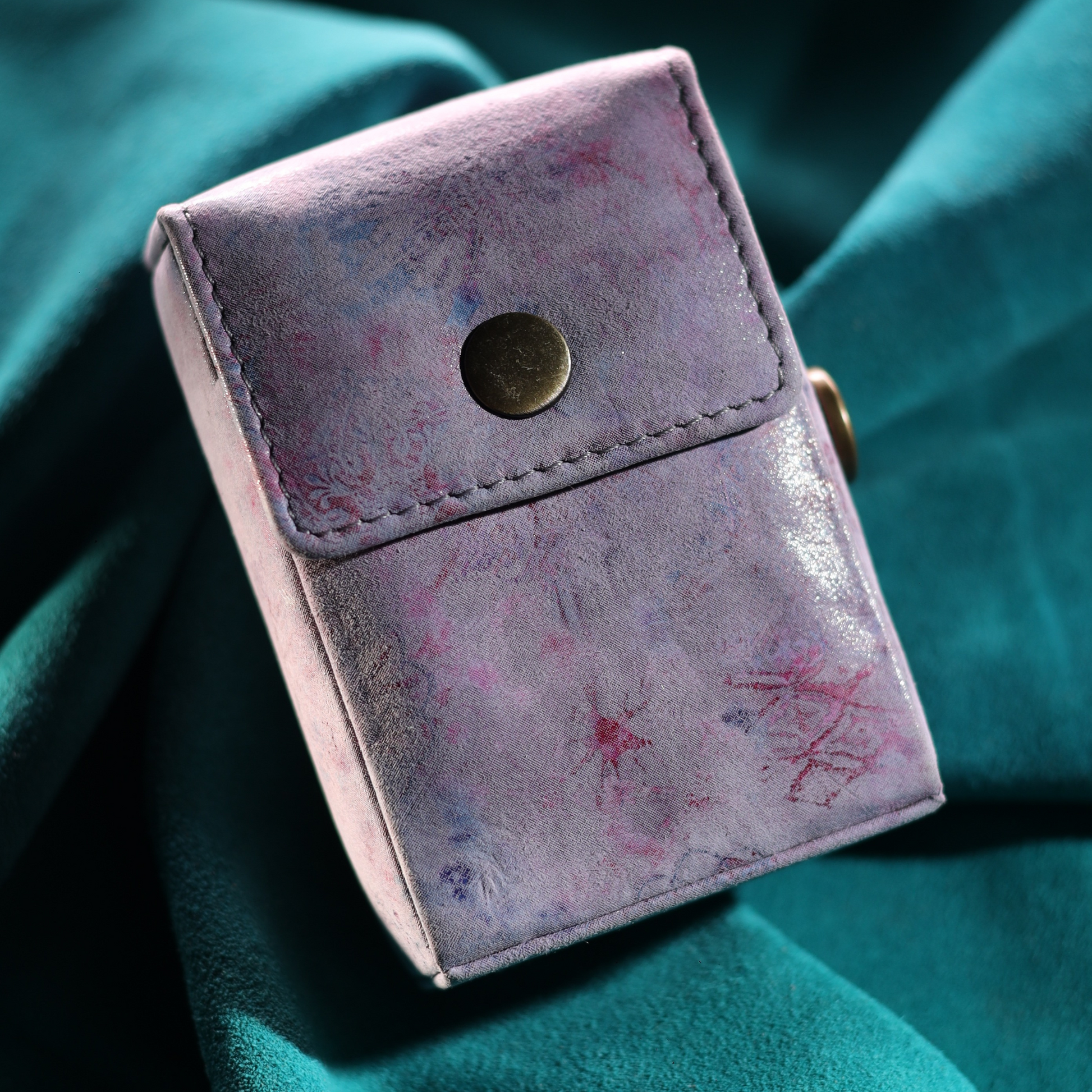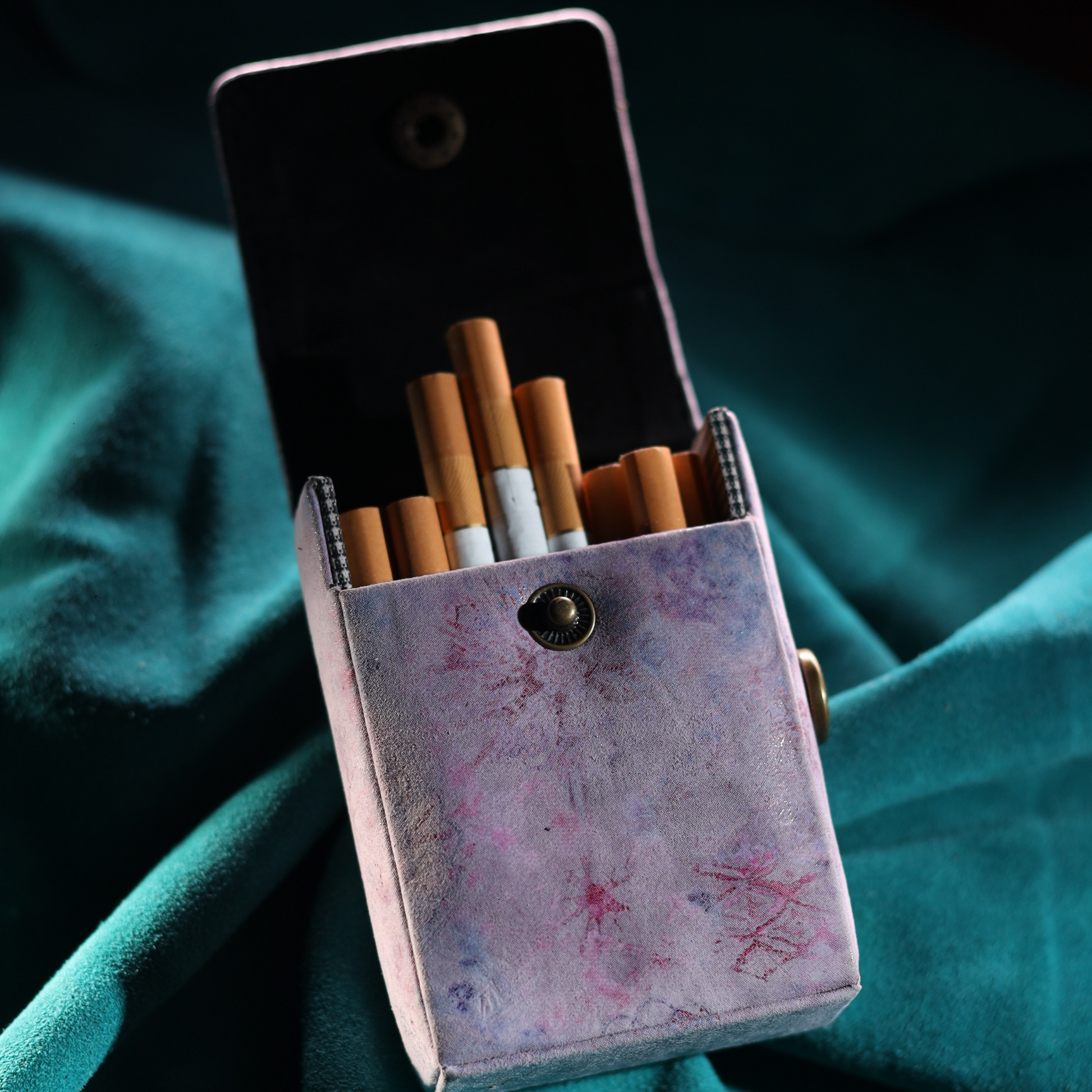The SMOK-PACK / LILAC HAZE is a handcrafted leather cigarette case washed in soft violet and blush tones, echoing drifting haze and twilight’s fading light.