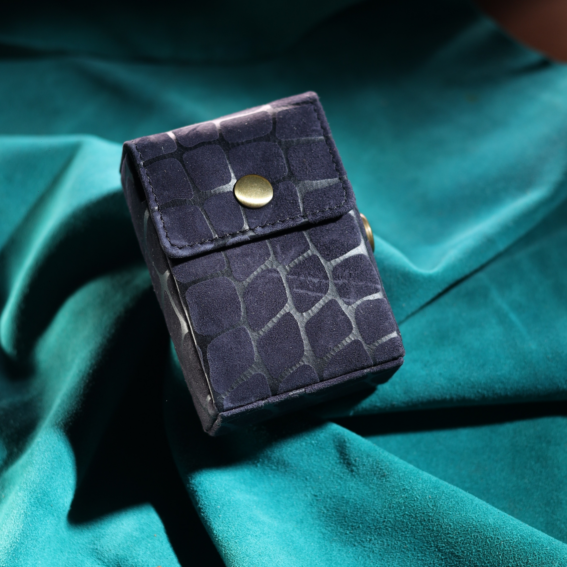 Material: Outer – Indigo-black croc-embossed leather; Inner – Goat suede lining (0.8–1mm); Reinforced with 2mm taxon sheets